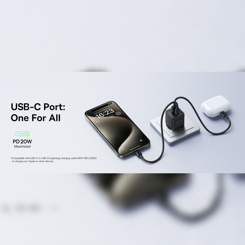 یکی دیگر از مزایای شارژر سریع Palm Baseus قابلیت شارژ همزمان دو دستگاه است. با یک پورت 20 واتی Type-C و یک خروجی USB 18 واتی، کاربر توانایی شارژ همزمان گوشی هوشمند و سایر گجت ها را دارد.