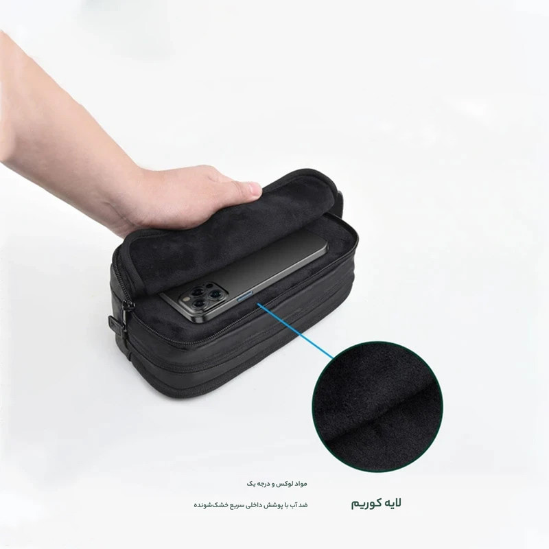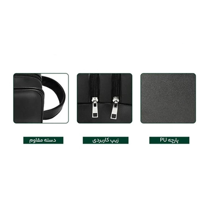 مشخصات: پوشش مقاوم در مقابل آب و گرد و غبار | دارای سه جیب | دسته قابل حمل | 600D Polyester + Leather Trim | ابعاد مناسب و وزن کم