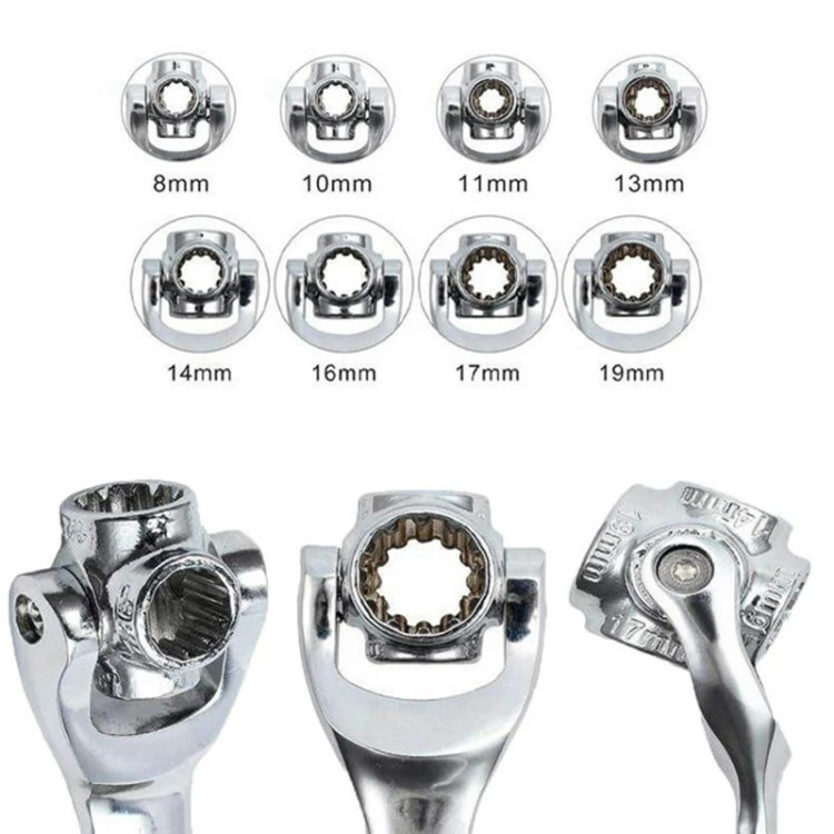 یکی از ویژگیهای جذاب این آچار، دارا بودن ۸ سری قابل چرخش ۳۶۰ درجه با اندازههای ۱۹x۱۷x۱۶x۱۴x۱۳x۱۱x۱۰ میلیمتر است. این ابزار متناسب با ۴۸ مدل و سایز آچار مختلف قابل استفاده است که به شما این امکان را میدهد تا با استفاده از یک ابزار مجموعه بزرگی از فعالیت ها را انجام دهید.