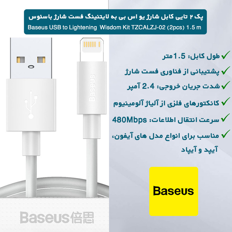 در پک Baseus Simple Wisdom دو عدد کابل لایتنینگ قرار داده شده است.