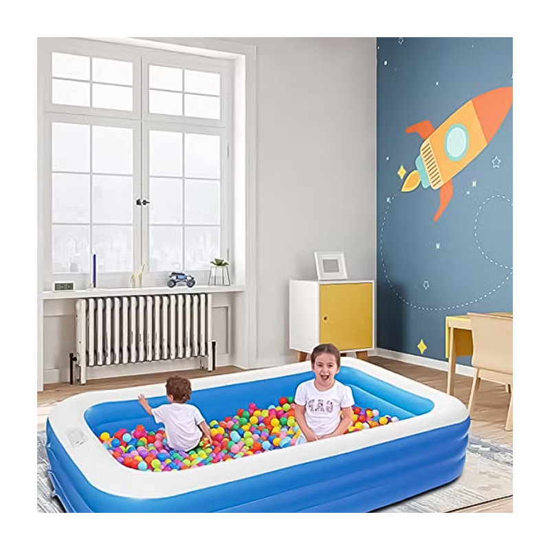 جنس PVC مقاوم | طراحی زیبا و ایمن | قابلیت نصب سریع و آسان | مناسب برای استفاده خانوادگی | مناسب برای فضای باز مانند حیاط و ویلا | دیوارههای بادی تقویتشده برای امنیت بیشتر