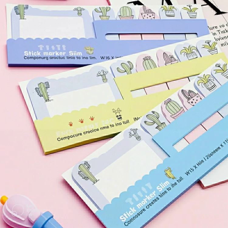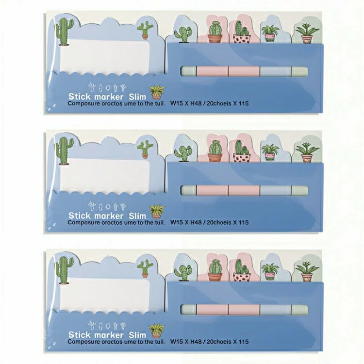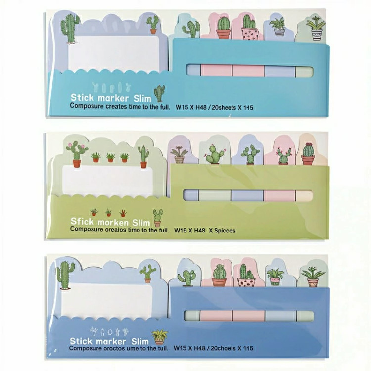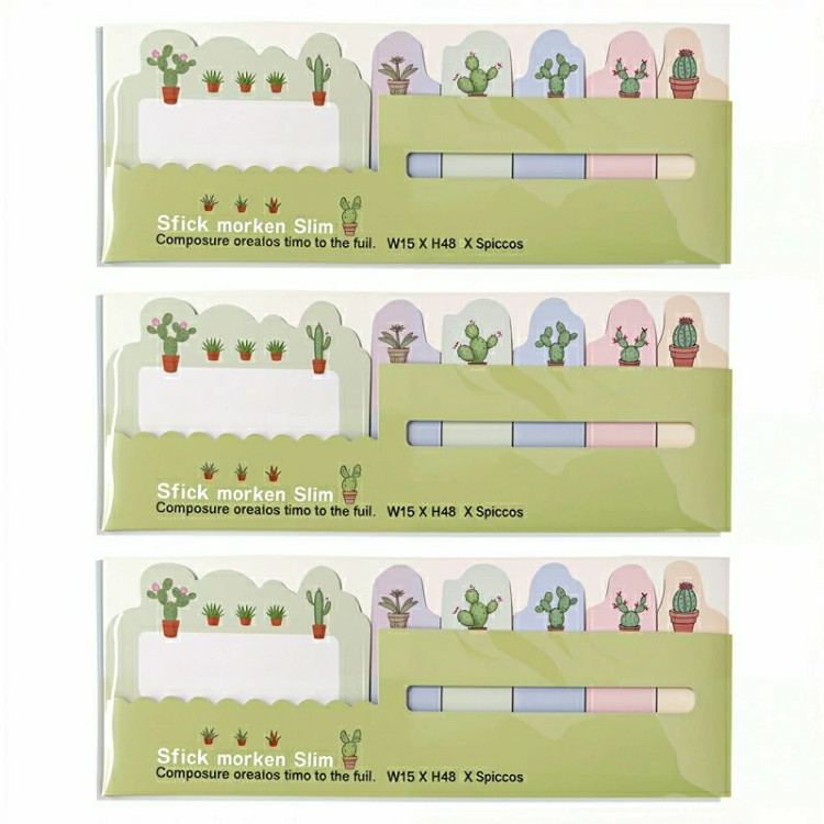 کاغذ یادداشت فانتزی استیک نوت طرح کاکتوس بسته 3 عددی