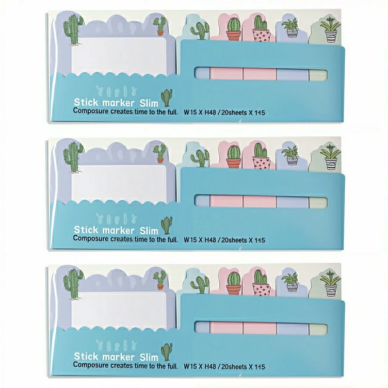کاغذ یادداشت فانتزی استیک نوت طرح کاکتوس بسته 3 عددی