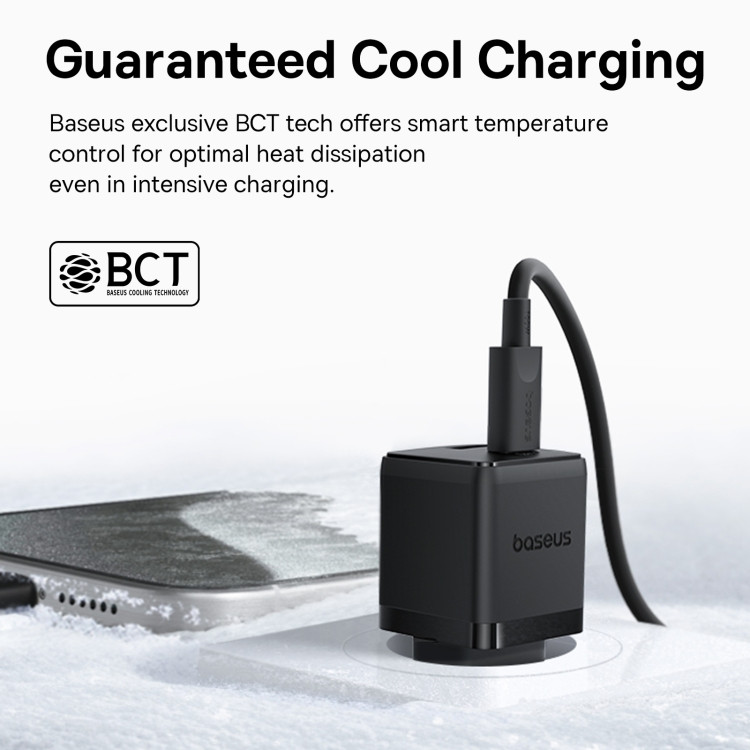 امنیت دستگاه های شما باید همیشه اولویت اصلی شما باشد. شارژر سریع Palm Baseus مجهز به BCT (فناوری خنک کننده Baseus) است که از گرمای بیش از حد محافظت می کند. این ویژگی به طور خودکار دما را در طول فرآیند شارژ تنظیم می کند و اطمینان می دهد که دستگاه های شما حتی زمانی که شارژر به شدت مورد استفاده قرار می گیرد ایمن باقی می مانند.