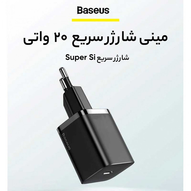 آداپتور شارژ سریع Baseus Super Si CCSUP-B01 محصولی دیگر از کمپانی بیسوس بوده و دارای 1 پورت USB Type C است که از پروتکل PD پشتیبانی میکند.تمام گوشش های اپل که بعد ار مدل Apple iPhone 8 عرضه شدهاند از قابلیت شارژ PD پشتیبانی میکنند. این قابلیت دارای قدرت شارژی 3 برابر سریعتر از شارژهای 5V/1A میباشد و قادر است در عرض 30 دقیقه 48 درصد شارژ باتری را تامین کند. خروجی تایپ سی این شارژر میتواند از شدت جریان 5V/3A پشتیبانی کند و دارای ورودی 100V-240V است و بازه گستردهای را پوشش میدهد.