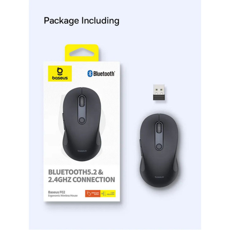 با ماوس بیسیم ارگونومیک Baseus F02 از آزادی حرکت و آزادی از سیمها لذت ببرید. به لطف اتصال بلوتوث و 2.4G، می توانید در عرض چند ثانیه به دستگاه خود متصل شوید و از پاسخگویی فوری در هر کاری لذت ببرید. این ماوس همچنین به طور جهانی با سیستم عامل های مختلف از جمله ویندوز، مک و لینوکس سازگار است.