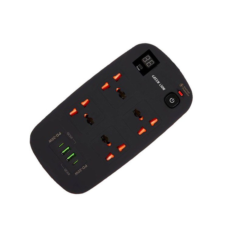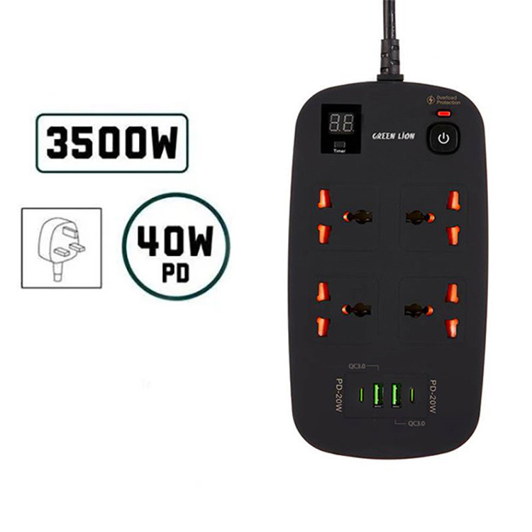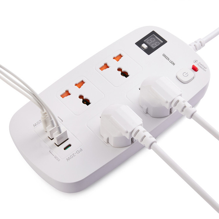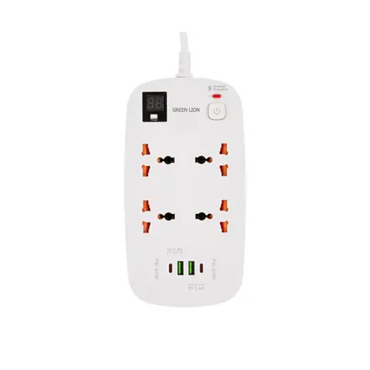 دارای دو پورت USB-A از نوع QC3.0 | دارای دو پورت Type-C از نوع PD | دارای نمایشگر دیجیتال | طول کابل متصل 3 متر | پریزهای برق از نوع Universal و مناسب برای استفاده در هر مکان