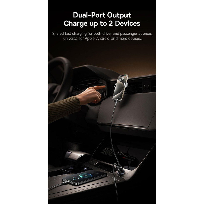 شارژر فندکی Baseus دارای دو پورت خروجی است که شامل یک پورت USB و یک پورت تایپ سی میباشد. این ویژگی به شما این امکان را میدهد که دو دستگاه مختلف را به طور همزمان شارژ کنید. برای مثال، شما میتوانید گوشی هوشمند خود را از طریق پورت USB و دستگاههای دیگر مانند تبلت یا دوربین ورزشی را از طریق پورت تایپ سی شارژ کنید. این قابلیت به ویژه در مواقعی که چندین دستگاه به شارژ نیاز دارند، بسیار کارآمد و مفید است.وجود دو پورت به شما این امکان را میدهد که نیازی به استفاده از چندین شارژر نداشته باشید و با استفاده از این شارژر کوچک و جمعوجور، چندین دستگاه را به صورت همزمان شارژ کنید.
