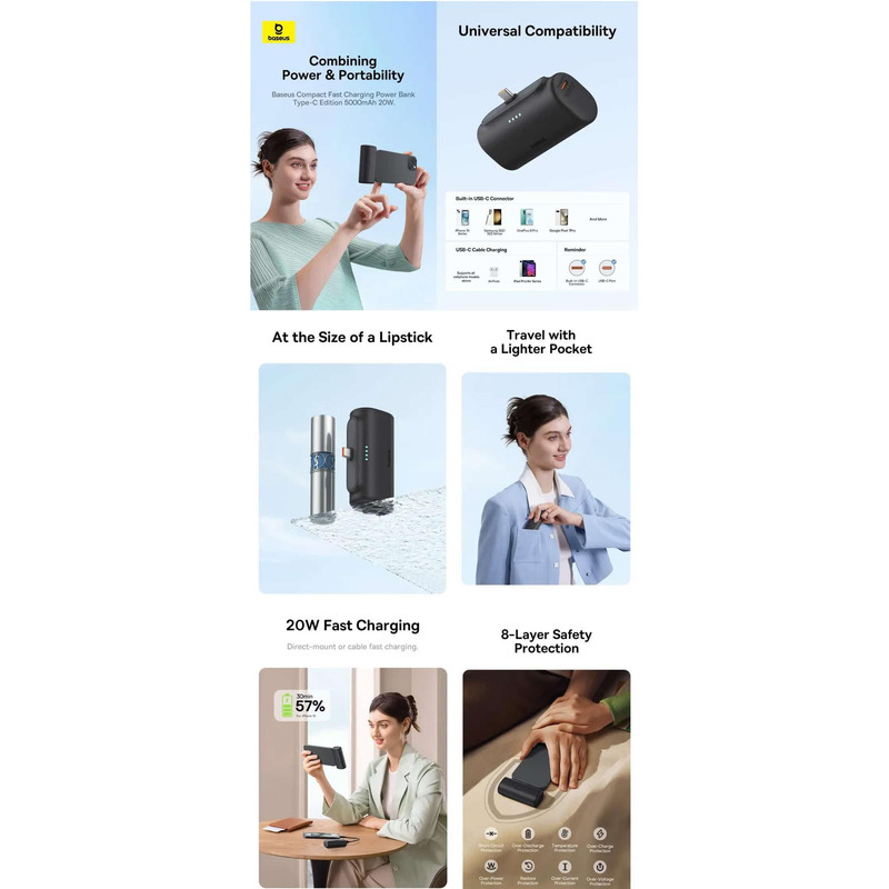 پاوربانک بیسوس مدل PPWC05T ظرفیت 5000 میلی آمپر ساعت