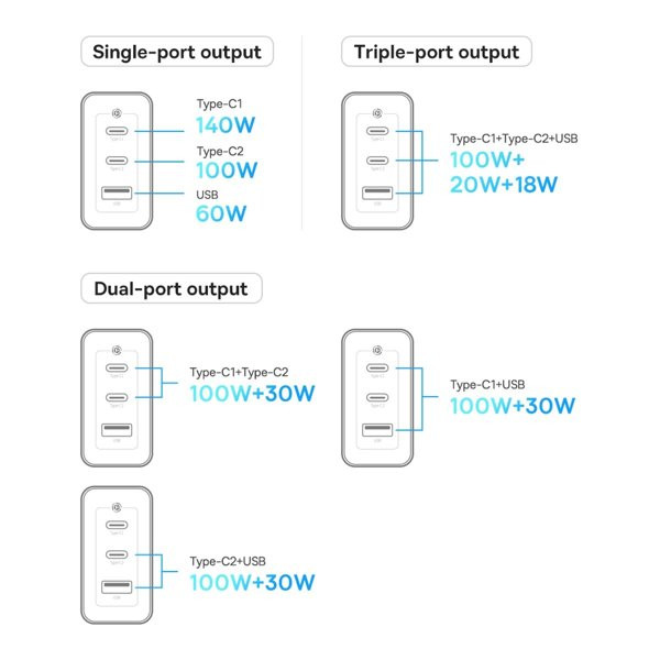 شارژر دیواری 140 وات باسئوس مدل GaN5 Pro